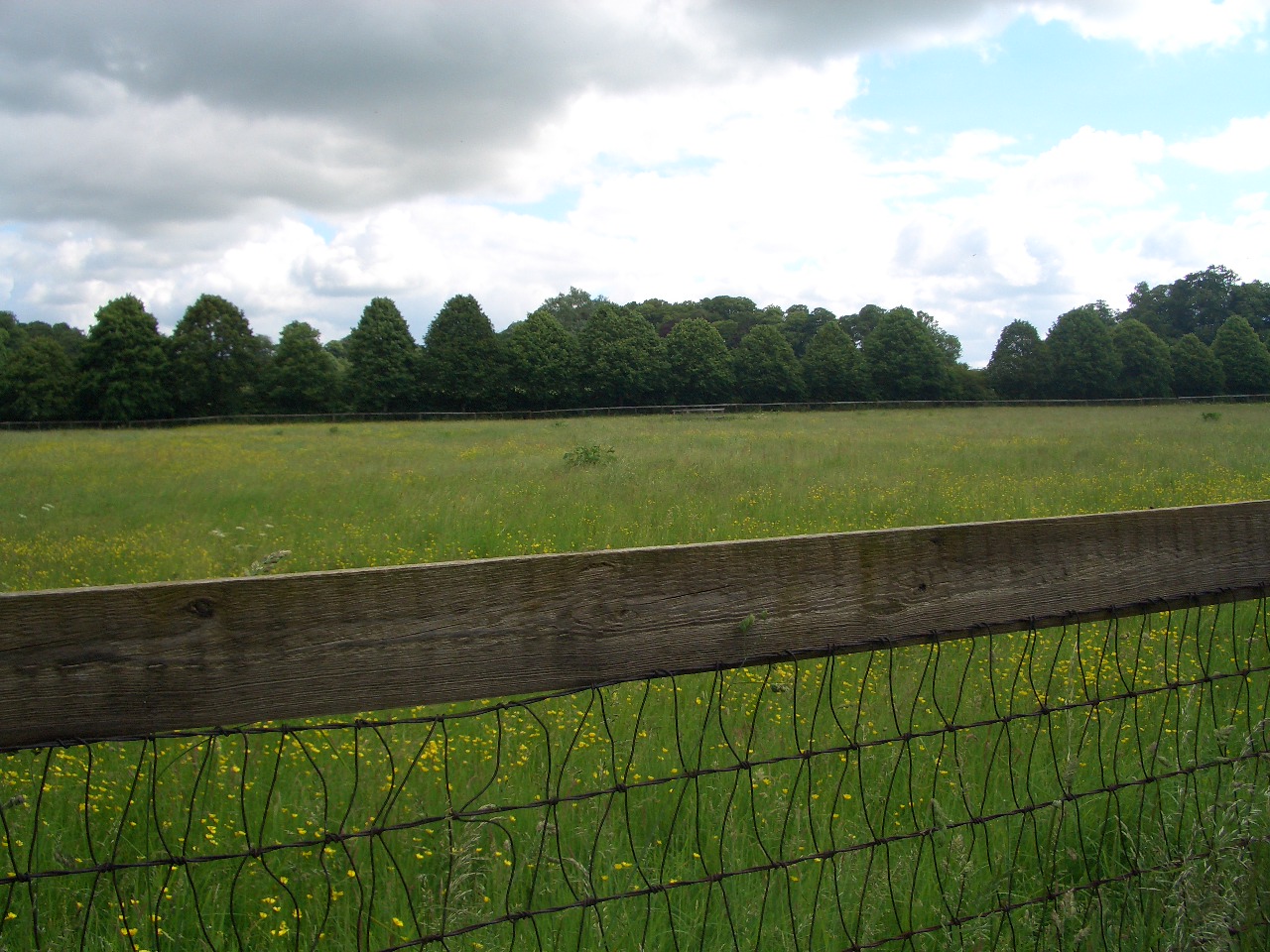 歩いて行くと少しずつ風景が変わってきました。片側が開けて牧草地に。