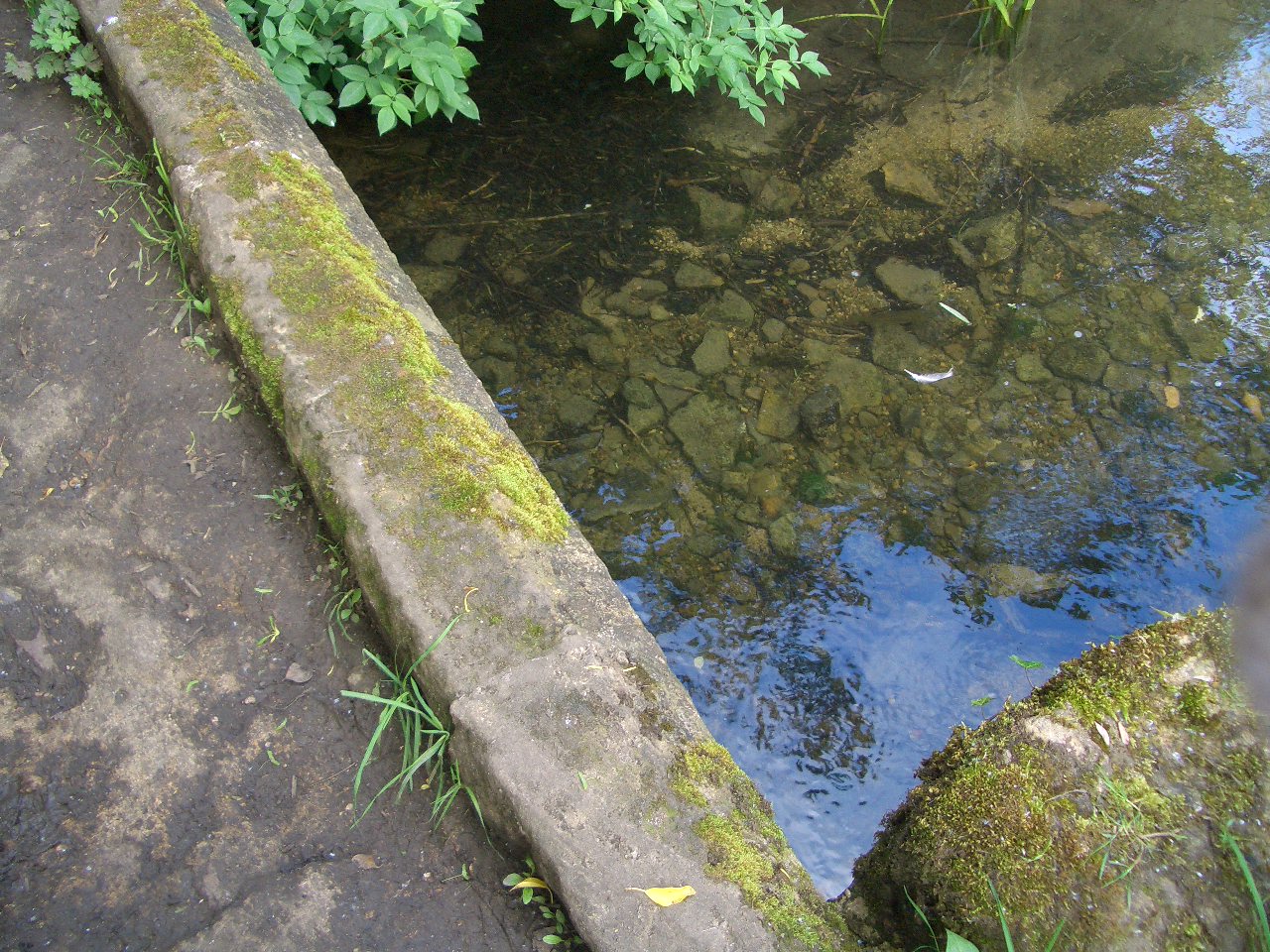 目指すフットパスの入口は、この町にある水車小屋の近くとのことなのでここは小川に沿って真っすぐ進みます。
