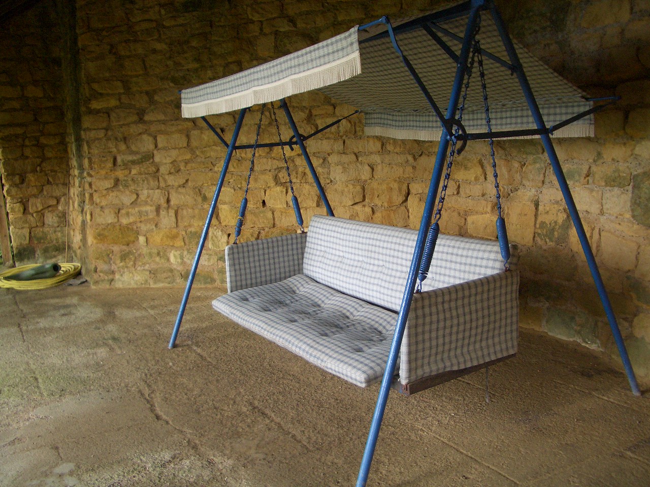屋根があって、中にソファーみたいなブランコが置いてある。