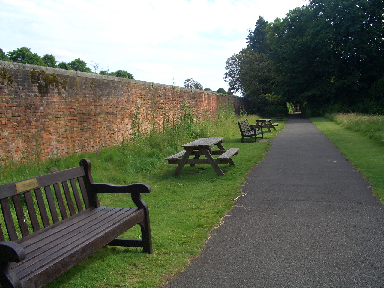 通路脇にはベンチとテーブル。ピクニックしたら楽しそう。